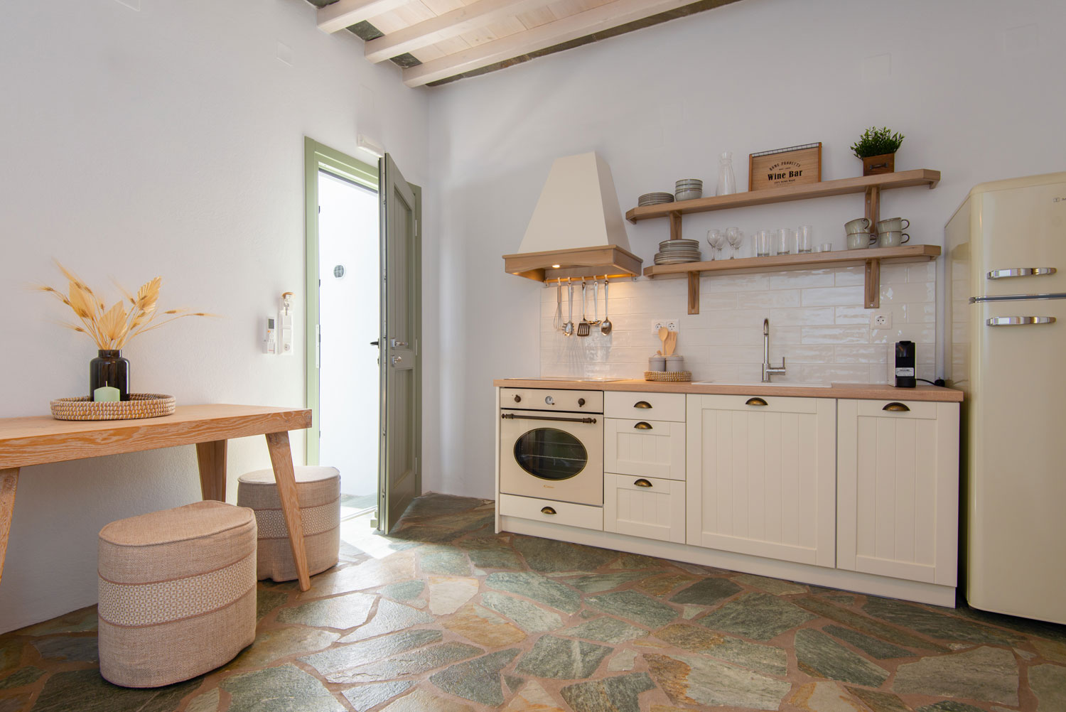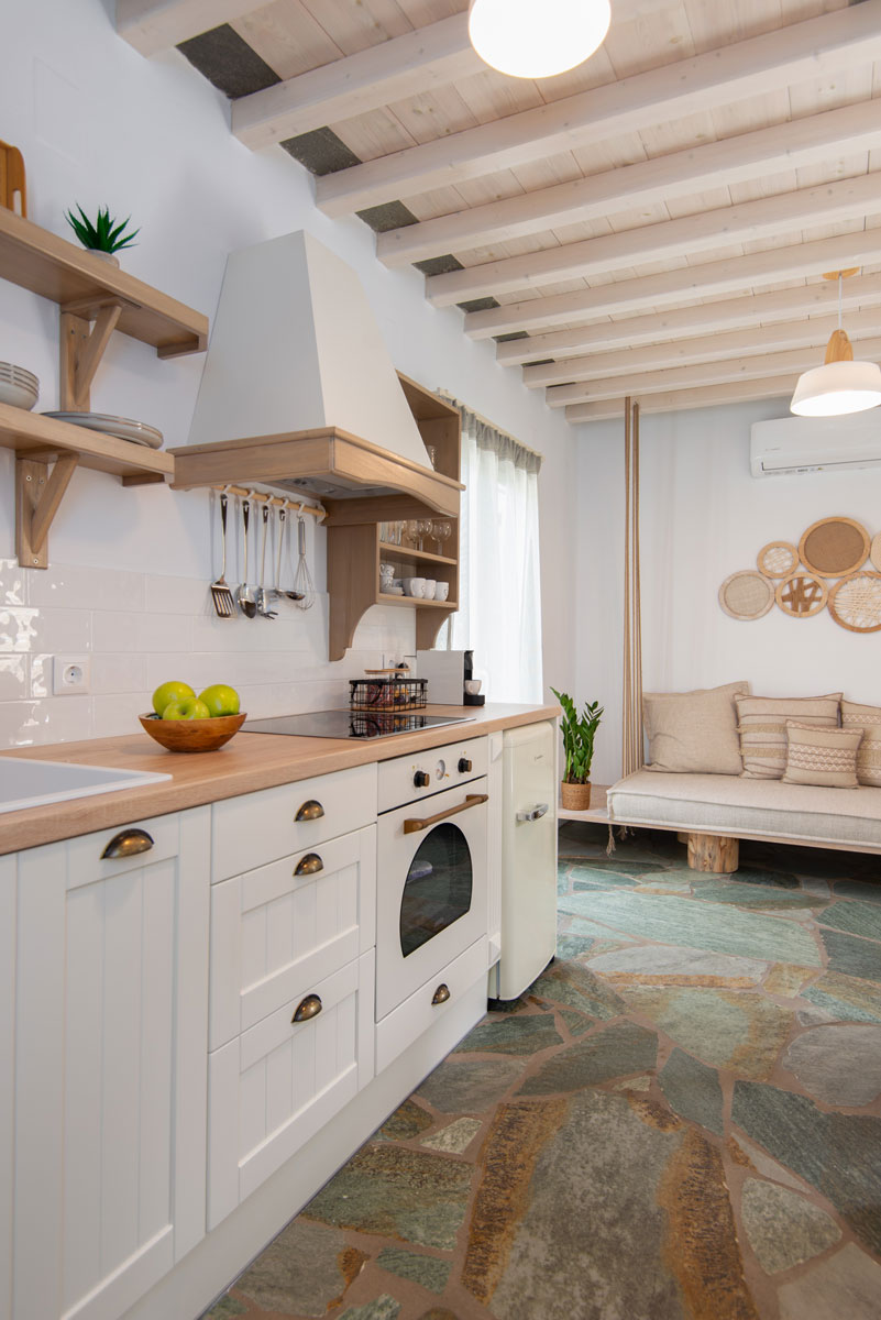 Δίχωρα διαμερίσματα στα οποία συνδυάζεται η μοντέρνα αισθητική με το παραδοσιακό στοιχείο. Διαθέτουν ένα μεγάλο υπνοδωμάτιο με διπλό κρεβάτι, ντουλάπα και τηλεόραση καθώς και μία ευρύχωρη κουζίνα πλήρως εξοπλισμένη με όλα τα απαραίτητα και με καλαίσθητα κεραμικά σκεύη. Στο χώρο της κουζίνας υπάρχει επίσης καθιστικό με τραπέζι φαγητού. Στα μπάνια συνδυάζονται τα μοντέρνα είδη υγιεινής και τα ξύλινα στοιχεία.