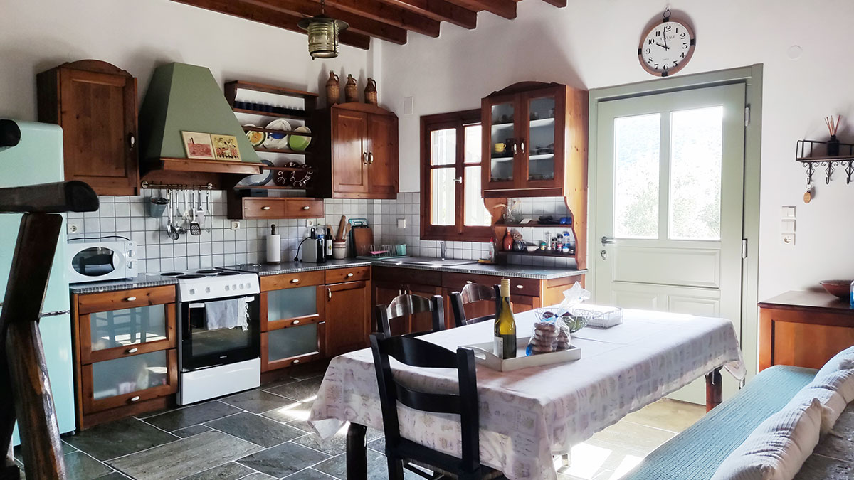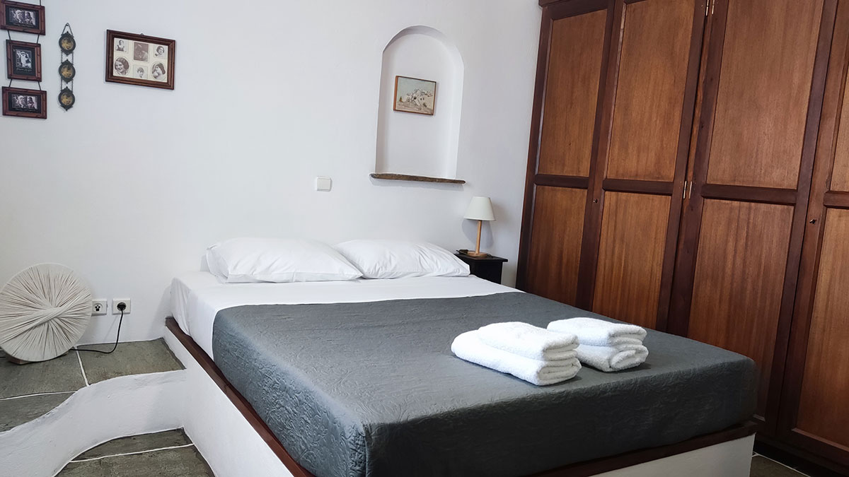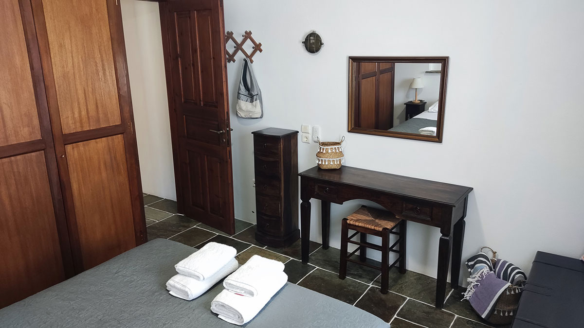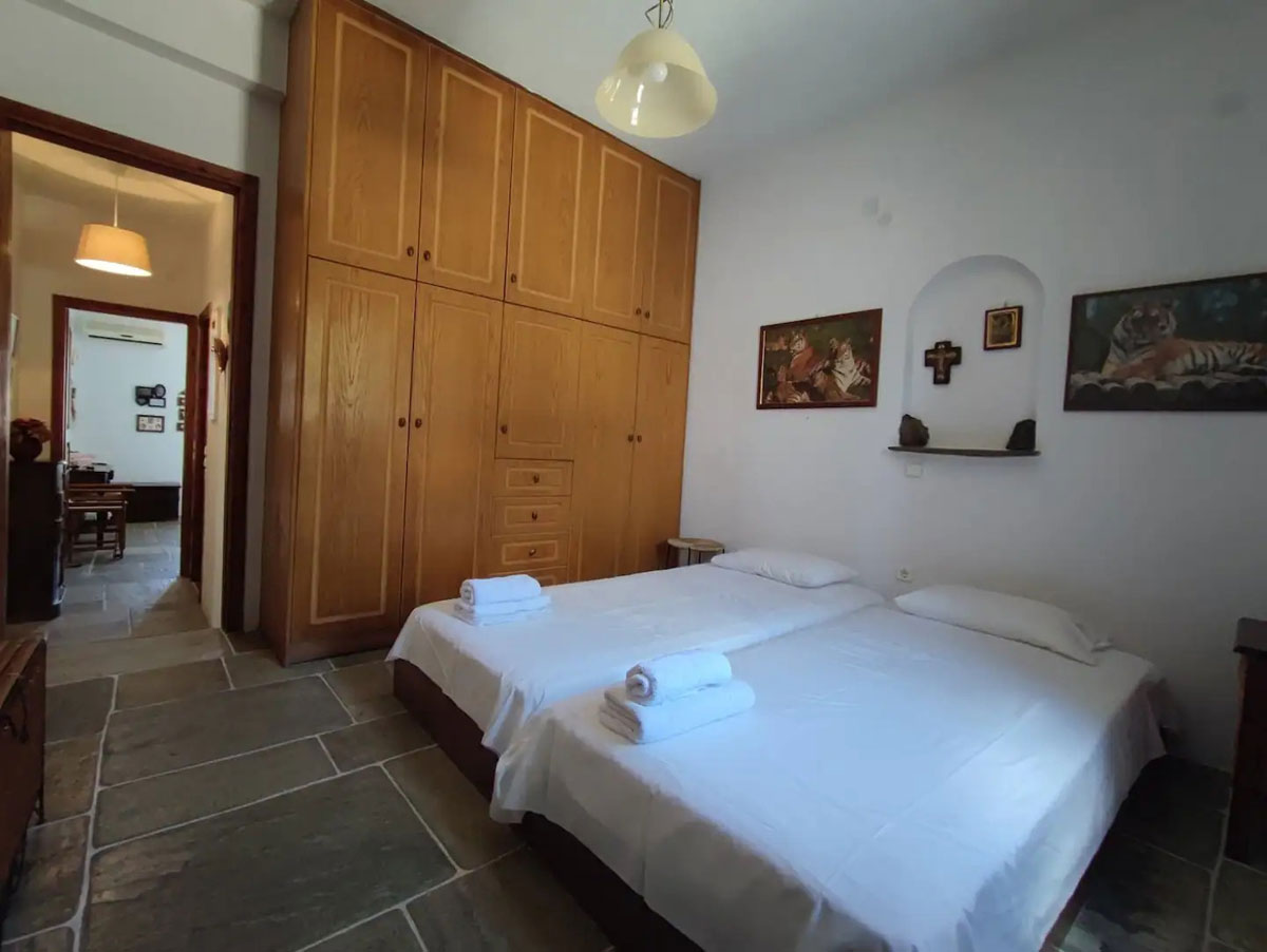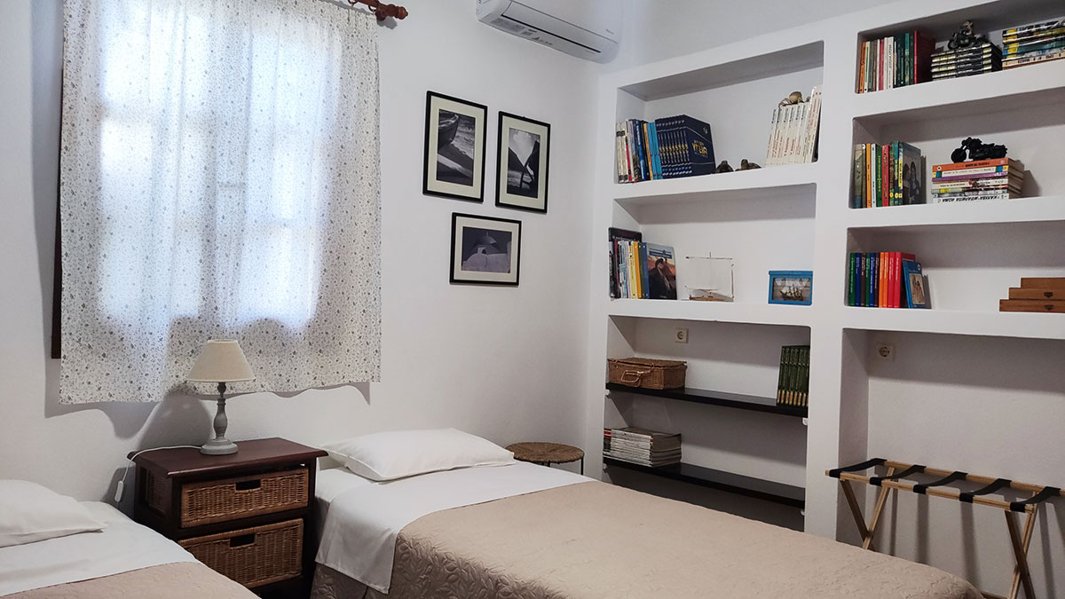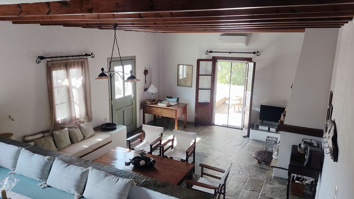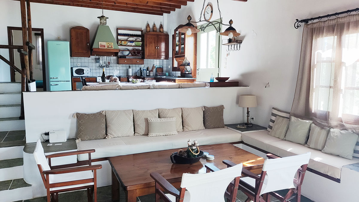 Πρόκειται για μία δίπατη κατοικία στο Βαθύ στην οποία κυριαρχεί το νησιώτικο χρώμα. Διαθέτει έναν ενιαίο χώρο στον οποίο φιλοξενείται η κουζίνα και το μεγάλο καθιστικό. Έχει ένα μεγάλο υπνοδωμάτιο με διπλό κτιστό κρεβάτι και ένα κυρίως υπνοδωμάτιο με διπλό κτιστό κρεβάτι και δική του τουαλέτα. Το τρίτο υπνοδωμάτιο είναι εξοπλισμένο με μονά κρεβάτια, ένα γραφείο και βιβλιοθήκη.