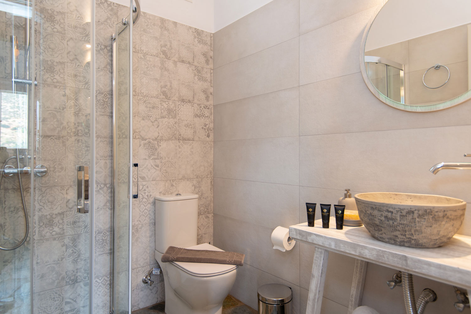 Η πρόσβαση στο Thymari Villas γίνεται με τα πόδια από τον χώρο στάθμευσης των οχημάτων (10').