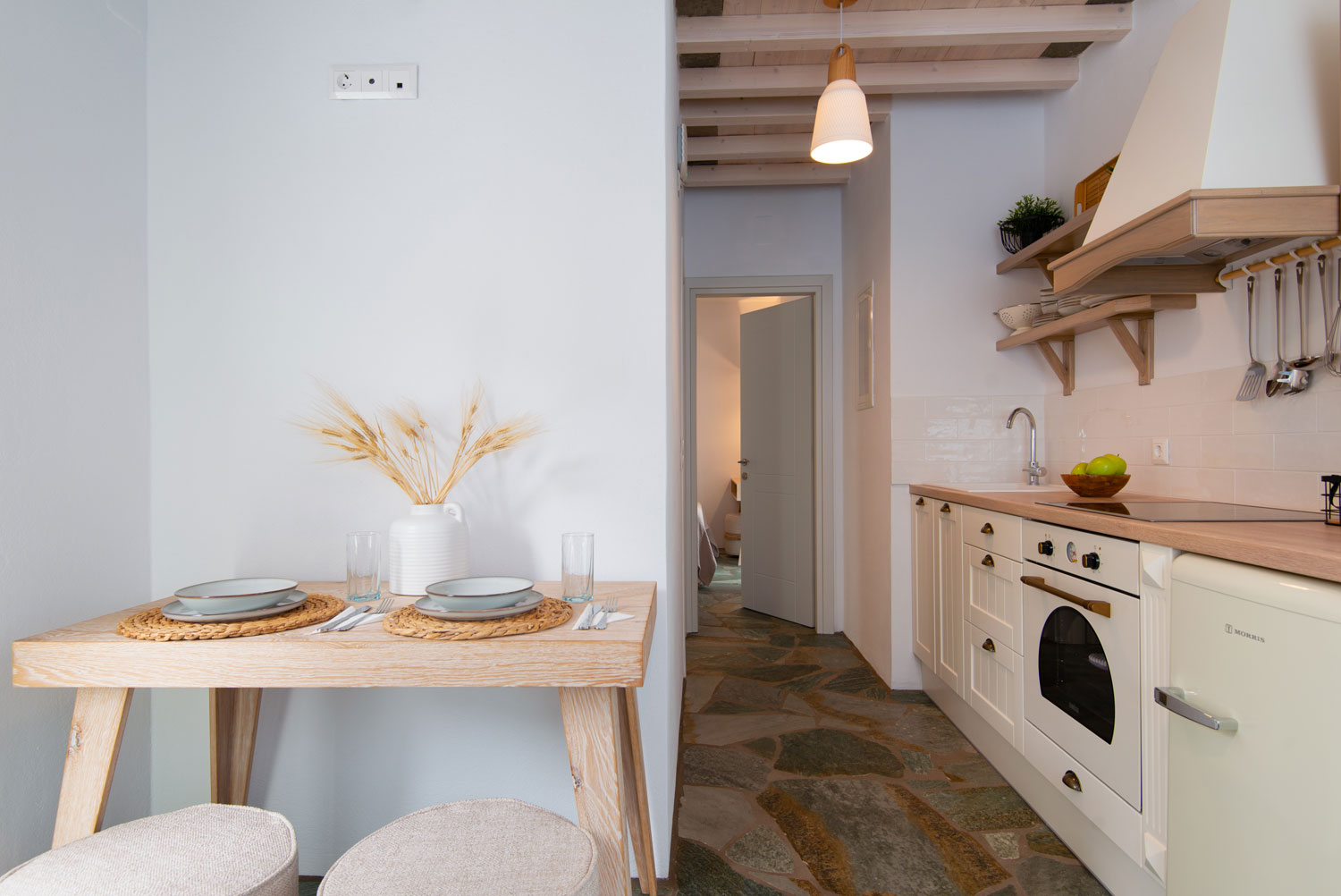 Δίχωρα διαμερίσματα στα οποία συνδυάζεται η μοντέρνα αισθητική με το παραδοσιακό στοιχείο. Διαθέτουν ένα μεγάλο υπνοδωμάτιο με διπλό κρεβάτι, ντουλάπα και τηλεόραση καθώς και μία ευρύχωρη κουζίνα πλήρως εξοπλισμένη με όλα τα απαραίτητα και με καλαίσθητα κεραμικά σκεύη. Στο χώρο της κουζίνας υπάρχει επίσης καθιστικό με τραπέζι φαγητού. Στα μπάνια συνδυάζονται τα μοντέρνα είδη υγιεινής και τα ξύλινα στοιχεία.