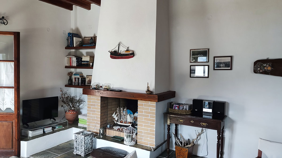 Πρόκειται για μία δίπατη κατοικία στο Βαθύ στην οποία κυριαρχεί το νησιώτικο χρώμα. Διαθέτει έναν ενιαίο χώρο στον οποίο φιλοξενείται η κουζίνα και το μεγάλο καθιστικό. Έχει ένα μεγάλο υπνοδωμάτιο με διπλό κτιστό κρεβάτι και ένα κυρίως υπνοδωμάτιο με διπλό κτιστό κρεβάτι και δική του τουαλέτα. Το τρίτο υπνοδωμάτιο είναι εξοπλισμένο με μονά κρεβάτια, ένα γραφείο και βιβλιοθήκη.